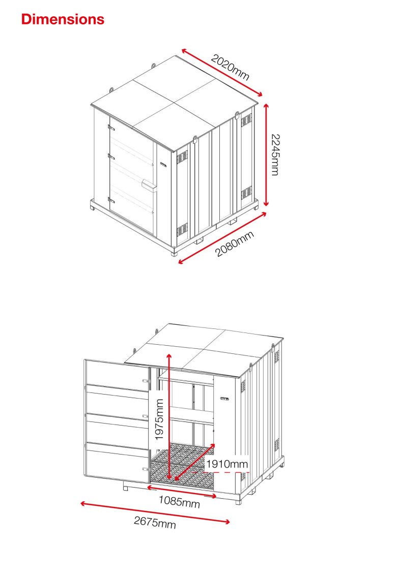 The FS2.0 can easily be maneuvered to wherever you need it on site as it can be moved by its forklift skids or crane lifting eyes. Its sturdy, built-to-last design combined with versatility makes it the perfect solution for your hazardous storage needs.