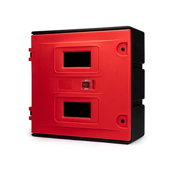 A double front loading Fire Extinguisher Box designed for two 6-12kg fire extinguishers, offering quick access in emergency situations.
