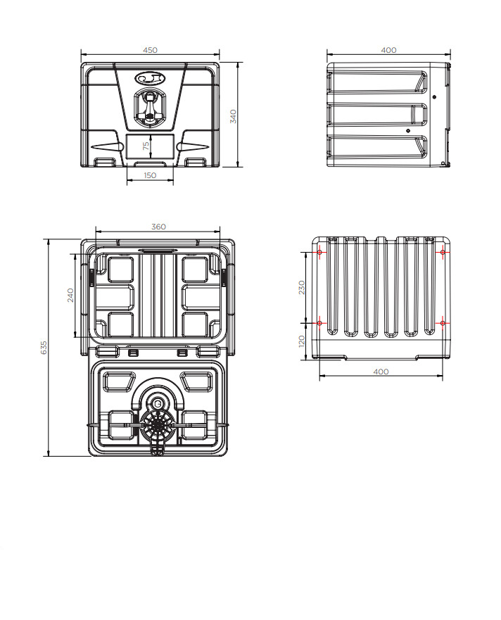 Vehicle Toolbox 45x40x34cm moulded to last. Part of a collection of strong toolboxes for commercial vehicles, featuring our latest design.