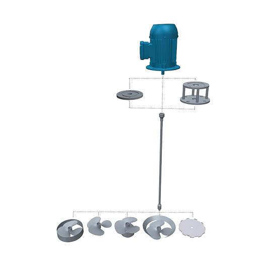 The series includes several models with different power ratings, shaft dimensions, and propeller diameters, allowing the right selection according to process requirements. Its robust construction, stainless steel shaft, and PVDF propeller make it a practical and durable choice for industrial environments.