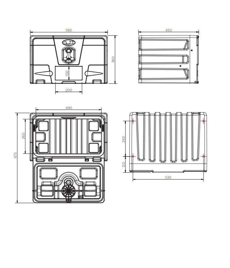 Πλαστική Εργαλειοθήκη Οχημάτων 58x45x36cm μέρος μιας συλλογής ανθεκτικών και αδιάβροχων πλαστικών εργαλειοθηκών για τοποθέτηση σε επαγγελματικά οχήματα και φορτηγά.