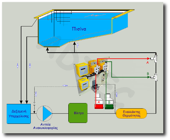 (PH-/Rx) Μείωση του pH και αυτόματη Χλωρίωση.