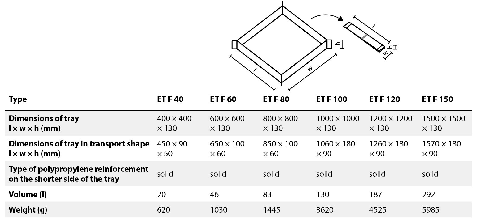 Οι Λεκάνες Συλλογής Διαρροών Γενικής Χρήσης Faster Tray είναι κατασκευασμένες από επικαλυμμένο ύφασμα PES/PVC με υψηλό βαθμό χημικής αντοχής, γεγονός που τις καθιστούν ιδανικές για τη συλλογή διαρροών μεγάλης ποικιλίας επικίνδυνων υγρών, π.χ. οξέα, αλκαλικές ουσίες, χλώρια και προϊόντα πετρελαίου (βλ. Πιστοποιητικό χημικής αντοχής).